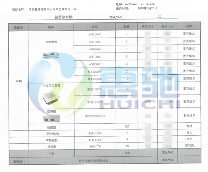 項目內容:麥克維爾風機盤管設備安裝調試工程