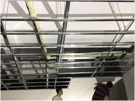 施工內(nèi)容: 本項目面積約為244平方,層高4.6米(原始層高),吊頂完成面層高3.0米。根據(jù)業(yè)主實際需求我方設(shè)計的但單位冷負荷為240W/平方。 本項目中展廳作為展示公司實力和企業(yè)形象。對美觀度要求較高,所以在空調(diào)室內(nèi)機上選型必須要“以藏為美”,因此我司設(shè)計使用中靜壓風管機配合風管,使得美觀度更高,送風均勻,舒適性更好。