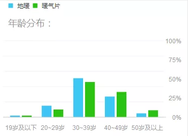 百度大數據顯示搜索地暖和暖氣片關鍵詞的用戶畫像中,30-30歲人群居多,40-49歲次之。可見,人到中青年事業穩定,更關注于生活的品質和家人的健康。噓寒問暖,不如為家人裝套取暖系統。